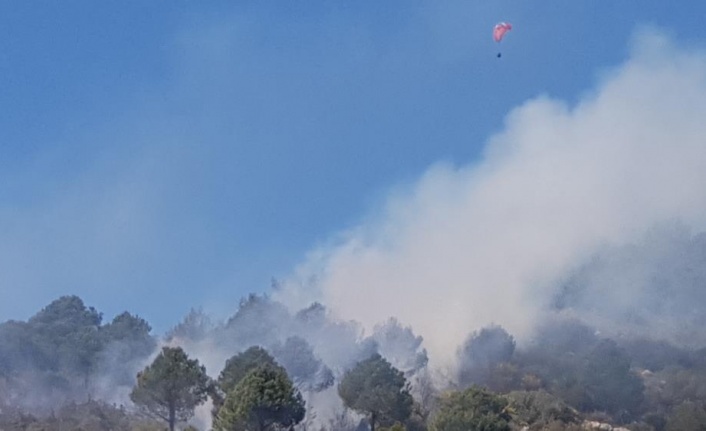 Alanya'da ormanlık alanda çıkan ve yaklaşık 2 saatte kontrol altına alınabilen yangın sırasında dumanların arasından geçen yamaç paraşütleri tehlikeye meydan okudu.