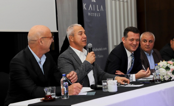 Belediye Başkanı Osman Tarık Özçelik, toplantıya katılan turizmcilere seslenerek, “Bana göre bu toplantının en önemli amacı ve sonucu, Osman Tarık Özçelik’in 1 Nisan itibariyle Belediye Başkanı olduktan sonra meclis üyeleri ve başkan yardımcıları ile birlikte turizme nasıl baktığını anlatmak, vizyonunu sizlere anlatmaya çalışmak. Vizyonumuzu ve bakış açımızı, gelecekte Alanya’mız için ne istediğimizi sizlere anlatmak bizim için çok önemli. Alanya’nın en önemli iki geliri tarım ve turizmdir. Turizm olursa tarım daha fazla var, turizm olursa tarımdan gelir elde eden arkadaşlarımızın da geliri daha yüksek olur. Alanya’da 170 bine yakın yatak var ve sizler gibi yanınızda çalışan arkadaşlarımız gibi, köyde domates yetiştiren amcamız da para kazanıyor. Biz geldikten sonra arkadaşlarımızla birlikte tespit ettiğimiz en önemli sorunlardan birisi ulaşım. Ulaşımla ilgili de önümüzde bir planımız var. İnşallah bizim dönemimiz içerisinde Atatürk Caddesi’ni bir ucundan bir ucuna tramvayla geçip, şehir merkezindeki bu kalabalığı aşacağız” dedi.