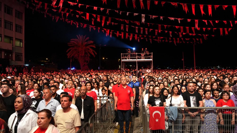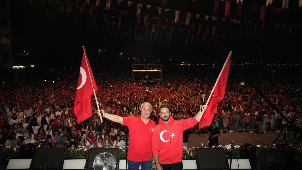 Başkan Özçelik’in ardından sahneye sevilen sanatçı Gökhan Özen çıktı. Konser alanını dolduran 60 bin kişi, ünlü sanatçının en sevilen şarkıları eşliğinde unutulmaz bir konsere şahitlik ettiler. Hep birlikte söylenen şarkılar eşliğinde devam eden konser geç saatlere kadar sürdü. Gökhan Özen ve Belediye Başkanı Osman Tarık Özçelik, birlikte seyircilerin arasına girerek vatandaşlarla kucaklaştılar. Ardından, ALKÜ Müzik Öğretmenliği Gençlik Korosu ellerinde Türk Bayrakları ile 10. Yıl Marşı’nı birlikte seslendirdiler. Coşku dolu anlara vatandaşlarda eşlik etti. Başkan Özçelik, ünlü sanatçıya Alanya çiçeklerinden bir buket ve sanatçı Merve Karlı imzalı Minyatürlerle Alanya Tablosu hediye etti. Gökhan Özen de Başkan Özçelik’e Cumhurbaşkanlığı Orkestrası tarafından 1930 yılında Şef Bay Zeki idaresinde kaydedilen İstiklal Marşı’nın ilk plaklarından birisini hediye etti. Hediye karşısında oldukça mutlu olan Başkan Özçelik, “Gökhan Bey bizi ziyaret etmişti ve o gün muhakkak kendisini Alanya halkı ile buluşturmamız gerek demiştim. O da bizi kırmadı ve birçok teklifi reddederek buraya geldi. Kendisine çok teşekkür ediyoruz” dedi.