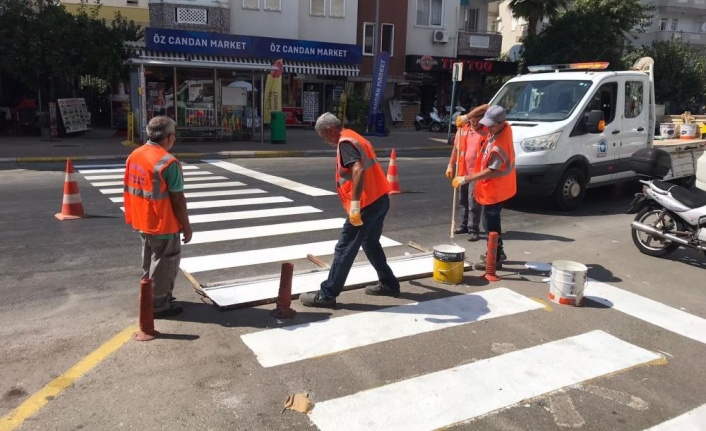 Antalya Büyükşehir Belediyesi, Alanya’da bulvar, ana cadde ve okul önlerindeki yaya geçitlerini boyuyor.
