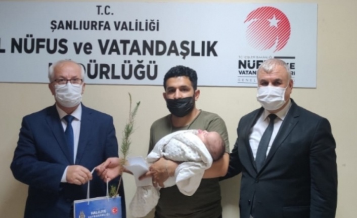 Şanlıurfa’yı orman fakiri olmaktan kurtarmak için Alanyalı Müdür Hasan Başaran öncüllüğünde İl Nüfus Müdürlüğü yeni doğan bebekler için nüfus cüzdanı çıkartmaya gelenlere kimlik kartlarıyla birlikte bir de fidan hediye ediyor.