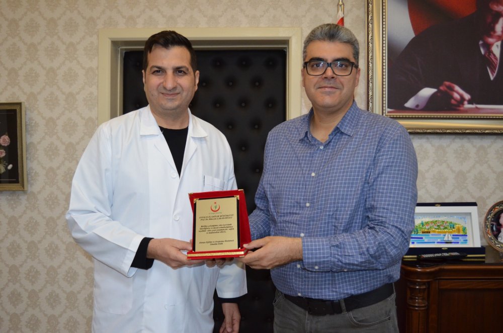 Başhekim Vekili Dr. Öğretim Üyesi Mustafa Etli, Prof. Dr. Hüseyin Lakadamyalı’ya hastaneye kazandırmış olduğu sağlık hizmetlerinden ve emeklerinden dolayı teşekkür etti.