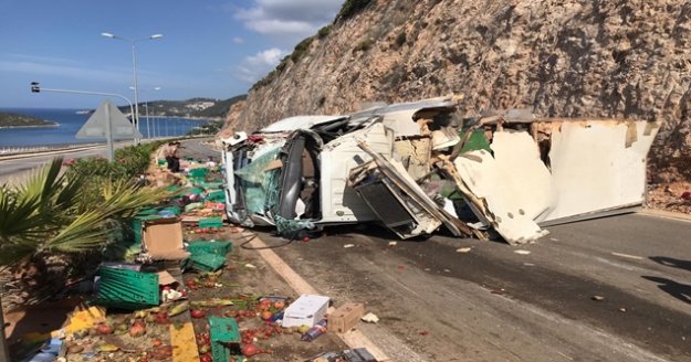 Kaza, sabah saatlerinde ilc¸e giris¸indeki kavs¸akta meydana geldi. Edinilen bilgiye go¨re, Antalya’dan Kas¸ istikametine giden Salih Tas¸ (65) yo¨netimindeki 07 AIP 766 plakalı gıda ve ihtiyac¸ malzemeleri yu¨klu¨ kamyon, su¨ru¨cu¨su¨nu¨n direksiyon hakimiyetini kaybetmesi sonucu ilc¸e giris¸indeki kavs¸akta devrildi. Yan yatarak su¨ru¨klenen kamyonda bulunan gıda maddeleri yolun kenarına dagˆıldı. Arac¸, yol kenarındaki dagˆlık alana c¸arparak durdu.