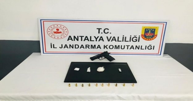 Antalya'da jandarmanın bir eve yaptığı baskında uyuşturucu madde ve tabanca ele geçirildi.