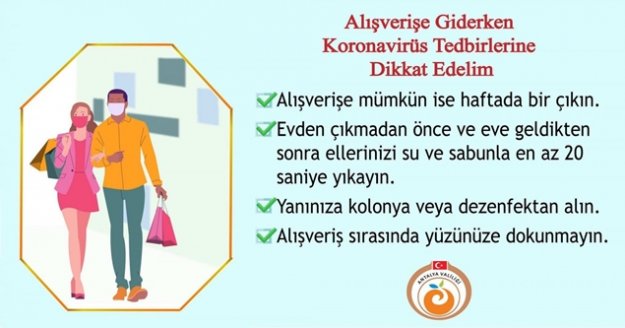 Alışverişe giderken koronavirüs tedbirlerine dikkat edelim.