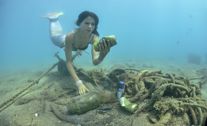 Antalya’da denizin altından çıkan çöpler, 'denizkızı'nı kızdırdı