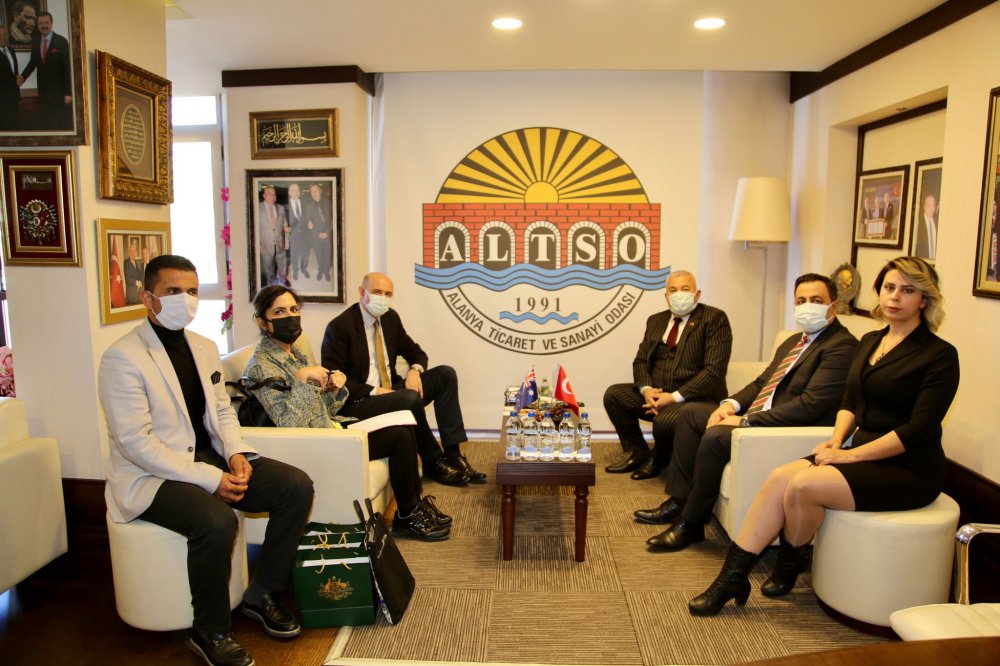 Avustralya’nın Türkiye Büyükelçisi Sayın Miles Armitage’yi ilk olarak ALTSO’da ağırlayan Başkan Şahin, Büyükelçi’ye Alanya’yı tanıtıcı hediyeler de takdim etti.