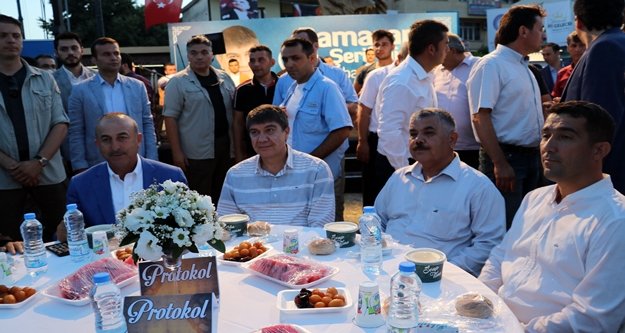 İftarın ardından konuklara hitap eden Bakan Çavuşoğlu, "Türkiye'nin meseleleri var, terörle mücadele ediyoruz. Türkiye'yi tekrar şaha kaldırıyoruz, yatırımlar, reformlar yapıyoruz. Devasa projeler gerçekleştiriyoruz. Gazipaşa hizmetin en iyisini hak ediyor. Gazipaşa Havalimanı'nı artık bölgeye yetmiyor. Gazipaşa Havalimanı'nın terminal binasını ve yolunu genişleteceğiz. Gazipaşa'ya yakışır bir havaalanını kazandırdık ama terminal binası bize yakışmıyor. Gelen turistleri burada rahat bir şekilde ağırlamamız lazım. Artık Gazipaşa Havaalanı'na 15 dakikada bir uçak iniyor. Önceki yıllarda günde bir, iki, üç uçak inerdi. Şimdi sadece İstanbul'dan THY üç defa uçuyor. THY, kolay kolay hiçbir şehre günde üç defa uçmaz. İşte bu bölgenin önemidir, havalimanının önemidir" dedi.