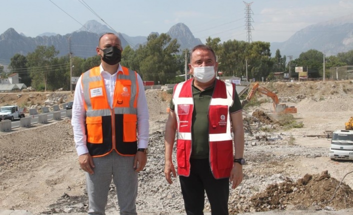 Antalya Büyükşehir Belediye Başkanı Muhittin Böcek, “Antalya için kamu yararına olan projelerimize devam ediyoruz. Burası seçim öncesinde, seçim bildirgemizde olmamasına rağmen çok büyük bir ihtiyaç olduğunu gördüğümüz için 1967-1968 yıllarında yapılan Karaman Çayı üzerindeki bu köprümüz, korezyona uğramış, kullanılamaz duruma gelmiştir. Herhangi bir sıkıntıya düşmemek düşüncesi ile Büyükşehir Belediyesi olarak çalışmalarımıza başladık. Bu köprü, 9 köy, Saklıkent, aynı zamanda Kumluca ve Korkuteli’ne ulaşımı olan çok önemli bir köprü” diye konuştu.