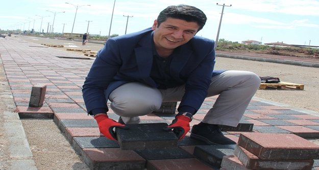 Başkan Genç yolun bir kısmında devam eden kaldırım çalışmalarına katılıp işçilerle birlikte Belediye’nin parke fabrikasında üretilen parke taşlarının döşenmesine yardım etti.
