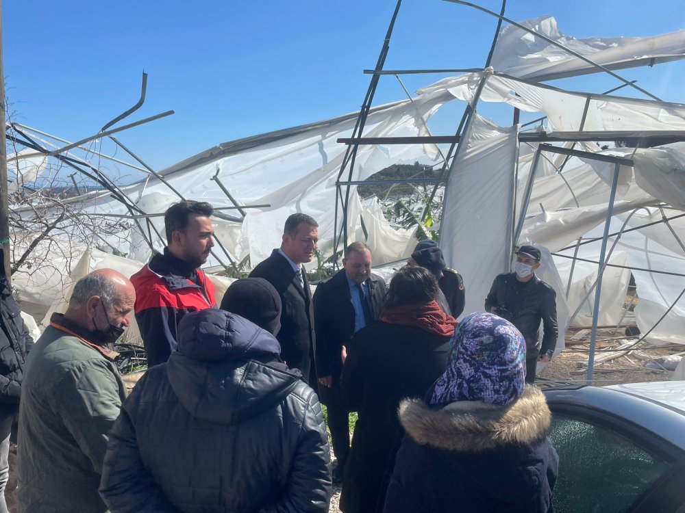 Dün Antalya'yı etkisi altına alan yoğun yağış ve sonrasında oluşan hortumdan bir çok ilçede vatandaşlar olumsuz yönde etkilendi. Alanya'yı da etkisi altına alan yoğun yağış ve hortum, zirai alanlarına, örtü altı üretim alanlarına ve birçok yerleşim yerine zarar verdi. Alanya Kaymakamı Dr. Fatih Ürkmezer, AK Parti Alanya İlçe Başkanı Mustafa Toklu, İlçe Jandarma Komutanı Yarbay Burak Mindivanlı, İlçe Tarım Müdürü Mehmet Rüzgar, İlçe Milli Eğitim Müdürü Yusuf Yılmaz ve İlçe Sosyal Hizmetler Müdürü Ahmet Çelik bugün Türkler, Payallar, Yeniköy ve Elikesik mahallelerinde afetten zarar gören bölgelerde incelemelerde bulundu. Devletin her zaman vatandaşının yanında olduğunu aktaran AK Parti Alanya İlçe Başkanı Mustafa Toklu; "Alanya Kaymakamımız, İlçe Jandarma Komutanımız ve resmi kurum müdürlerimizle birlikte afetten zarar gören Türkler, Payallar, Yeniköy ve Elikesik Mahallelerimizde vatandaşlarımızla beraberdik. Bölgemizde hasar tespit çalışmaları başlamıştır. Halkımız emin olsun. Devletimiz güçlüdür, yaralarımızı tek tek saracağız. Türkler Borsa İstanbul Sosyal Bilimler Lisesi'ne, bölge halkımıza ve tüm çiftçilerimize çok geçmiş olsun. Rabbim ülkemizi her türlü afetinden muhafaza eylesin." ifadelerine yer verdi.
