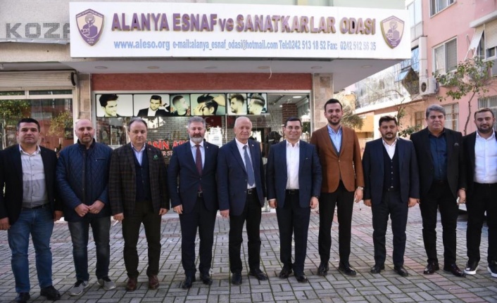 Kepez Belediye Başkanı Hakan Tütüncü, Antalya’nın batısından başlayan ilçe ziyaretlerini Alanya’da sürdürüyor. Başkan Tütüncü Alanya’nın önceki dönem belediye başkanı Hasan Sipahioğlu ile görüşüp Alanya Esnaf ve Sanatkar Odası'nı (ALESO) ziyaret etti. ALESO’nun Ocak ayında gerçekleştirilen seçimlerinde yeniden başkanlık koltuğuna oturan Nuri Demir’e, hayırlı olsun dileklerini ileterek, başarılar diledi.