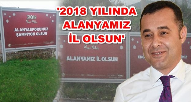 Alanya Belediye Başkanı Adem Murat Yücel'in yeni yıl dilekleri billboardlara taşındı. 2018 yılına girmemize sayılı günler kala Alanya'nın dört bir yanı Başkan Yücel'in yeni yıl mesajları ile donatıldı.
