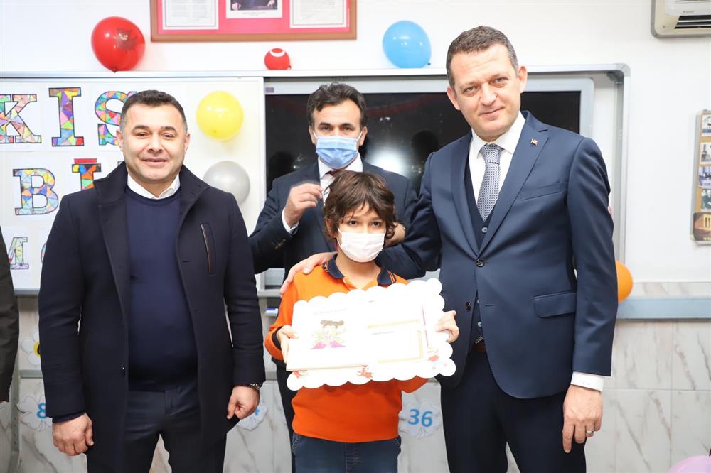Alanya Belediye Başkanı Adem Murat Yücel, 2021-2022 Eğitim Öğretim yılının ilk yarısının sona ermesiyle birlikte karne alan çocukları yalnız bırakmadı. Alanya Kaymakamı Fatih Ürkmezer ve Alanya Milli Eğitim Müdürü Yusuf Yılmaz ile birlikte Hasan Atıcı İlkokulu’nda çocuklarla bir araya gelen Başkan Yücel, çocuklara tatilde hoş ve sağlıklı vakit geçirebilmeleri amacıyla hijyen kiti ve kitap hediye etti. Çocuklarla uzun uzun sohbet eden ve çocukların gelecek hayallerini dinleyen Başkan Yücel, hepsine başarılar diledi. Alanya’yı 7’den 70’e herkes için yaşanabilir bir kent haline getirmek için çalıştıklarını belirten Başkan Yücel, tüm çocuklara hitap edecek spor ve park alanlarını kısa sürede hayata geçireceklerini söyledi.