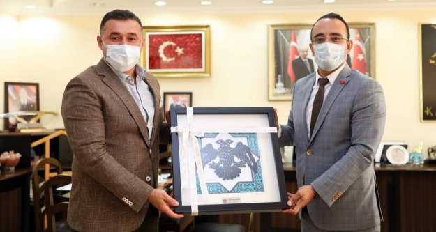 Belediye başkanlığı makamında Başkan Yücel ile bir araya gelen Başsavcı Kesgin ile Komisyon Başkanı Saykal, Alanya gündemine dair sohbet etti. Ziyaret sonunda Başkan Yücel, Kesgin’e Selçuklu kartalı armalı tablo hediye etti. Güncelleme Tarihi: 11 Ağustos 2020, 13:07