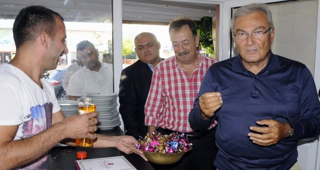 Baykal, bayram namazının ardından yine bir bayram sabahı klasiğini de yerine getirdi. Yanındakilerle Antalya’nın meşhur serpme böreğinin yapıldığı Avcuoğlu Börek Salonu’na geçen Baykal, bu kez börek açmadı, börek ustalarının bayramını kutladı.