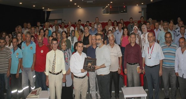 Seminerin ardından Alanya Belediyesi İnsan Kaynakları Müdürü Gani Şahin, Akif Aktuğ’a, Alanya Belediye Başkanı Adem Murat Yücel adına teşekkür ederek Alanya Muz Lifinden yapılan bir tablo hediye etti.