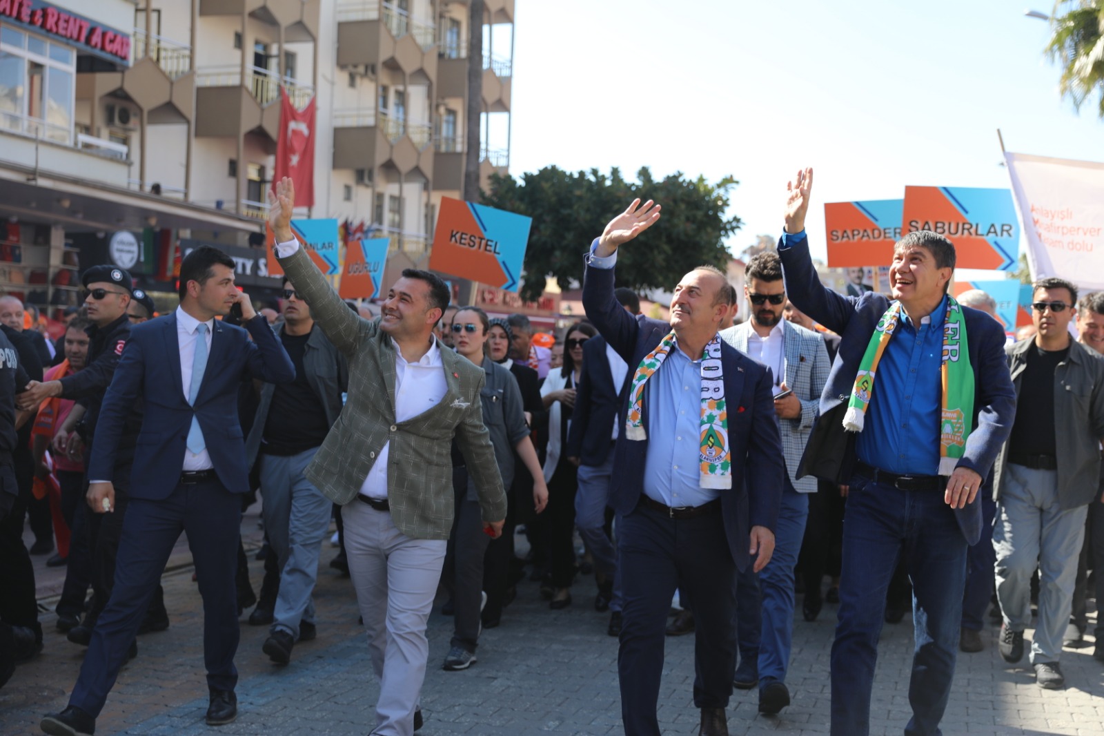 Bakan Çavuşoğlu da yürüyüşteki kalabalığa vurgu yaparken; “Alanya’da Adem Murat Yücel, Antalya’da Menderes Türel diyoruz. Yürüyüşte gördüm ki bu iş bitmiş. Alanya kararını çoktan vermiş.” dedi.