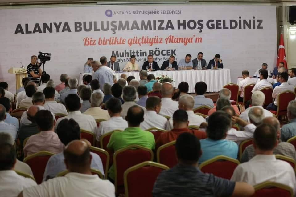 Alanya’nın sorunlarını konuşmaya geldiklerini ifade eden Başkan Böcek, “102 mahallemiz dahil olmak üzere Alanya’mızdaki sorunlar nedir bunların tespitini yapacağız. Muhtarlarımız, sivil toplum örgütlerimiz, başkan ve yöneticilerle, komisyoncularımızla Alanya’mızı konuşacağız. Antalyamızı hep birlikte ortak akılla biz yöneteceğimizi söylemiştik” diye konuştu. Büyükşehir Belediye Başkanı Muhittin Böcek, daha sonra muhtarlara tek tek söz vererek, sorun ve taleplerini dinledi. Sorunları ilk ağızdan dinlemenin aktif müdahale açısından önemli olduğunu ifade eden Böcek, sık sık bu buluşmayı gerçekleştireceklerini söyledi. “Biz demokrasiye inanan insanlarız” diyen Başkan Böcek, İstanbul Büyükşehir Belediye Başkanlığı seçimi kazanan Ekrem İmamoğlu’na da başarılar diledi.