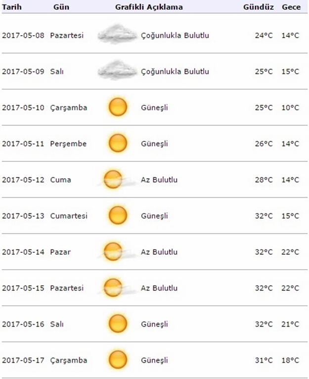 Meteoroloji genel Müdürlüğü'nün tahminlerine göre Alanya'da hava sıcaklıkları bu hafta artmaya devam edecek. Pazartesi ve Salı günü bulutlu olan hava Çarşamba'dan itibaren yerini kavurucu güneşe bırakacak. Hava sıcaklığı ise 32 derecelere kadar çıkacak.