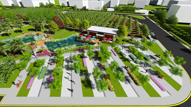 Giriş bölümleri, gölet ve çevresi, spor alanları, rekreatif alanlar ve narenciye bahçesi olmak üzere 5 farklı bölümden oluşan park projesinde, giriş bölümü peyzajı, kent mobilyaları, asimetrik taş döşemeleri ile birlikte küçük bir meydan olarak kurgulandı. 1105 metrekarelik yapay gölet ve çevresi, suda oksijen üreten bitkilerin, su ile uyumlu olan ağaç ve sazlıkların bulunduğu kendini temizleyebilen ekolojik bir yapıya sahip olacak. Parkta iki açık spor sahası, fitness aletleri, koşu parkuru yer alacak. Rekreatif alanlar olarak kurgulanan bölümde ise gezinti yolları, restoran, 31 araçlık açık otopark bulunuyor.
