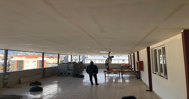 Antalya Büyükşehir Belediyesi’nin eğitime desteği sürüyor. Antalya merkezi ve ilçelerde eğitim kurumlarının bazı eksik ve ihtiyaçları Antalya Büyükşehir Belediyesi tarafından gideriliyor. Bu kapsamda Büyükşehir Belediyesi Fen İşleri Dairesi Başkanlığı Alanya Oba Nazmi Yılmaz Lisesi’nin kütüphane olarak kullanılan bölümüne çatı yaptı.