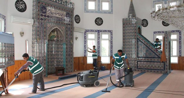 Alanya Belediyesi Çevre Koruma ve Kontrol Müdürlüğü bünyesinde kurulan 6 kişilik özel cami temizlik ekibi, haftanın altı günü kesintisiz hizmet veriyor. Özel araçları en son teknoloji ürünü elektrikli süpürgeleri, halı yıkama ve kurutma makineleri ile cami ve mescit temizliğini yapan ekip, camilerin dış temizliğinin yanında halı, kapı, cam, ahşap, avize, kitaplık, avlu, tuvaletler, abdesthaneler ve fayansları da temizliyor.
