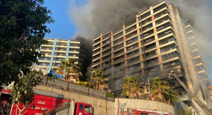 Alanya'da ruhsatsız ve iskanı olmayan otel inşaatının yangın sonrası yeniden başladığı ortaya çıktı.