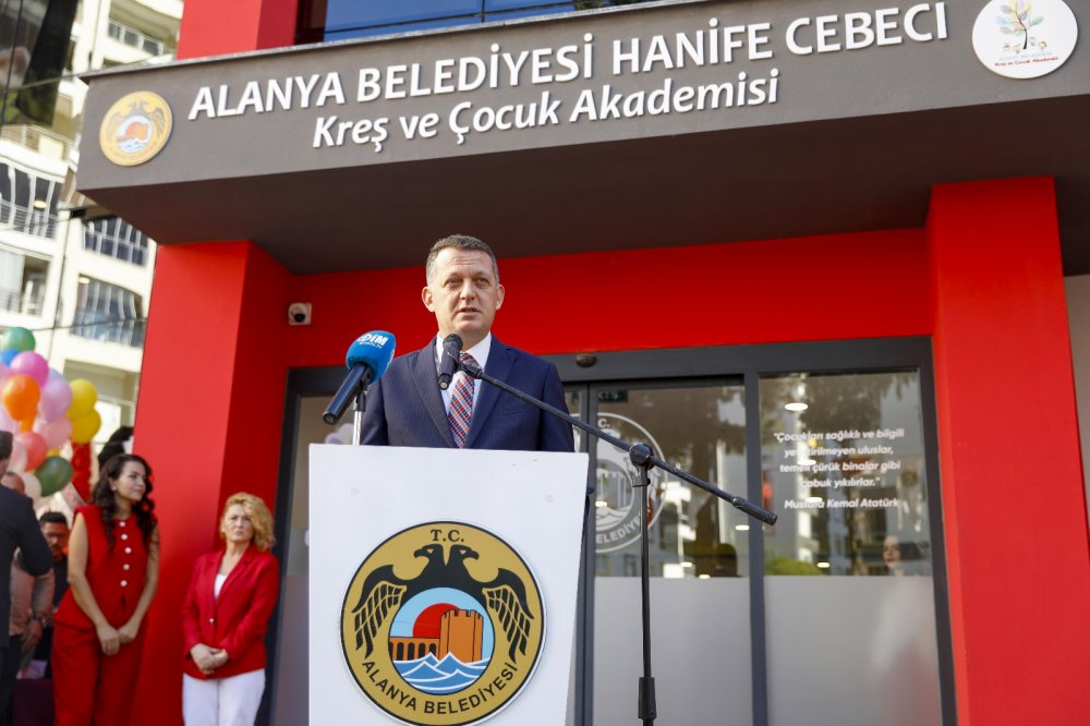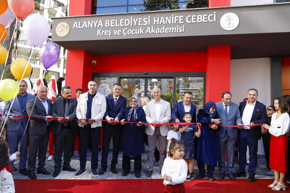 Alanya Belediyesi’nin Mahmutlar Mahallesi’nde yapımını tamamladığı Hanife Cebeci Kreş ve Çocuk Akademisi, düzenlenen törenle açıldı. Modern eğitim anlayışıyla inşa edilen kreş, 3-6 yaş arası çocukların gelişim süreçlerine katkı sağlamak amacıyla hayata geçirildi.
