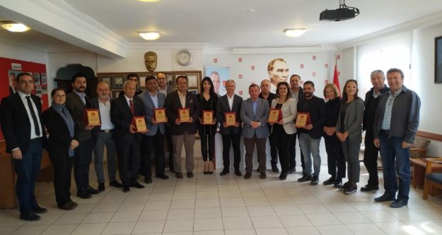 CHP Alanya ilçe Teşkilatı Başkanı Coşkun Karadağ ve ilçe yönetim kurulu üyeleri geçmiş dönemde Alaya Belediyesi’nde görev yapmış CHP’li meclis üyeleri için plaket töreni gerçekleştirdi.