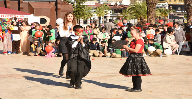 Tören boyunca engelli çocuklar ve öğrencilerle yakından ilgilen Başkan Yücel, öğrencilerle fotoğraf çektirdi. İskele meydanında, önce engelli öğrenciler tarafından jimnastik gösterileri sunuldu. Pandomim gösterilerinin ardından öğrenciler şiirler okudu. 'Ateş böcekleri' adlı grubun gösterilerinden sonra zeybek gösterisi sunuldu. Daha sonra koro tarafından 'görmezden gelme beni' isimli şarkı seslendirildi. Ritm gösterisinin ardından dans gösterisi sunuldu. Koronun seslendirildiği 'hayat bayram olsun' şarkısının seslendirilmesinden sonra Hadi Cantemur tarafından şarkılar seslendirildi.