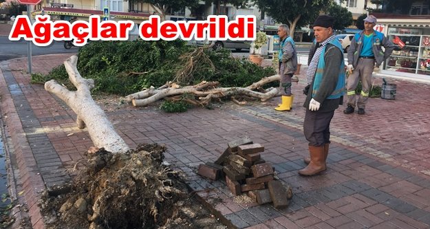 Alanya'da etkili olan sağanak yağışlar dün gece yarısı fırtınaya dönüştü. Saat 24.00 sıralarında başlayan fırtına nedeniyle bir çok ağaç devrildi. Alanya'da yol kenarında bulunan bir çok ağaç fırtına nedeniyle devrilirken, vatandaşlar sabah saatlerinde gördükleri manzara ile fırtınanın şiddetini bir kez daha anladılar. Antalya Büyükşehir Belediyesi ve Alanya Belediyesi ekipleri yıkılan ağaçlar için sabah erken saatlerinde çalışma başlattı. Çalışmalar sürüyor.