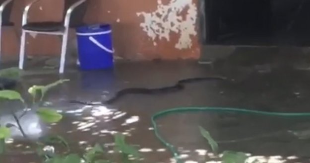 İçeride yılan olduğunu fark eden ev sahipleri, evin içinden avluya hızla kaçmaya çalışan yılana önce tazyikli suyla sonra kürekle müdahale etti. Kısa süreli paniğin yaşandığı anlar cep telefonuyla kaydedildi. Evden çıkmayı başaran yılanın akıbeti belirlenemedi.