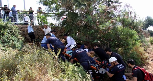 Olay saat 10.30 sırasında Muratpaşa ilçesi varyant seyir terasındaki falezlerde meydana geldi. Ailevi sorunları olduğu ileri sürülen bir kadın, bariyerlerle çevrili alanı geçip, falezlerin ucundaki kayaların üzerinde oturmaya başladı. Kadını gören vatandaşlar durumu polise bildirdi. Varyanta gelen polis iletişim çabalarına karşılık vermeyince kadının atlama ihtimaline karşı deniz polise ve itfaiye ekiplerinden destek istedi. Polisin, “Abla yapma, sorunun neyse bize söyle, yardımcı olalım, lütfen oturur musun” sözlerine, “gelmeyin” diye karşılık veren 36 yaşındaki S.Y. kayanın ucuna doğru gitti. Sağlık, polis ekipleri ve vatandaşların tüm ikna çabalarına yanıt vermeyen S.Y. ayaklarını kayalık alandan sarkıttı. Meraklı kalabalık ise yaşananları izledi. Kayanın ucunu tutunan S.Y. biranda düştü. Alt tarafı uçurum ve deniz olan S.Y. şans eseri düştüğü yerde kaldı. Yaklaşık 20 metreden otlarla kaplı sert zemine düşen S.Y. için tüm ekipler seferber oldu. Sarp alana bariyerlerden atlayarak inen sağlık ekipleri ilk müdahaleyi kadına olduğu yerde yaptı. Boyunluk takılıp, sedyeye alınan S.Y., ekipler tarafından elden ele taşınmaya başlandı. Alanın dik ve sarp olması nedeniyle ekipler S.Y.’yi elden ele yukarı varyanta doğru taşımaya başladı. Sedye bağlanan iple elden ele imece usulü dik alandan varyanta çıkarıldı. Ambulansa alınan genç kadın Antalya Eğitim ve Araştırma Hastanesine kaldırıldı. Çeşitli yerlerinde kırık ve ezilme bulunan S.Y.’nin arkasında bıraktığı çantası ve cep telefonunu polis teslim aldı.