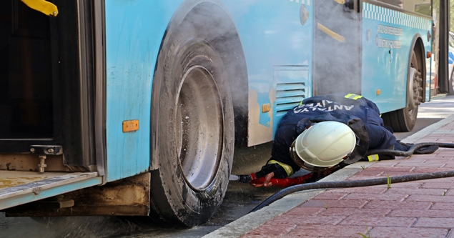 Olay, Muratpaşa ilçesi Avni Tolunay Caddesi üzerinde saat 17.00 sıralarında meydana geldi. Edinilen bilgiye göre, Varsak-Lara hattında hizmet veren 07 AY 0270 plakalı halk otobüsünün sol lastiğindeki fren balataları yanmaya başladı. Lastiklere bir anda sıçrayan alevler sonrası dumanların geldiğini fark eden otobüs şoförü Cengiz Kurt, durakta yolcuları tahliye ettikten sonra aracı bölgeden uzaklaştırıp sağa çekti. Kurt’un ihbarı üzerine olay yerine polis ve itfaiye ekipleri sevk edildi. Kısa sürede bölgeye gelen itfaiye ekipleri, lastikte çıkan yangını söndürme çalışması başlattı. Polis ekipleri de, yolu trafiğe kapatarak çevrede güvenlik önlemi aldı. İtfaiye ekiplerinin söndürme ve soğutma çalışmaları esnasında yanan sol arka lastikte patlama meydana geldi. Yaralanın olmadığı yangın sonrası, yol trafiği tekrar açıldı.