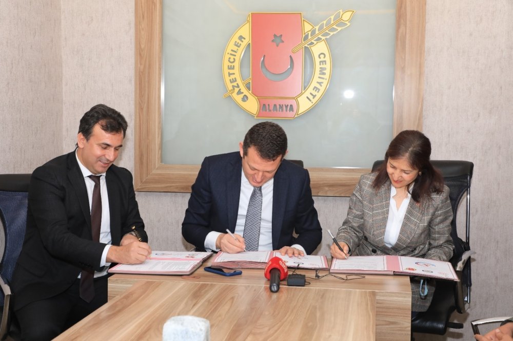Protokol imza töreninde konuşan Kaymakam Ürkmezer “Bugün burada Ahenk Projesi kapsamında oluşturduğumuz Genç Kalemler işbirliği protokolü için bulunuyoruz. Bu proje ile amacımız öğrencilerimizin okuma becerilerinin yanı sıra yazma becerilerini de ortaya çıkararak arttırmak. Medya sektörü gün geçtikçe değişiyor ve medyanın günümüzdeki önemi çok büyük. Bizler de bu anlamda eğitim gören öğrencilerimizin sadece okuma anlamında değil yazma anlamında da kendilerini geliştirmeleri, ilerleyen medya sektöründe yer bulmaları ve kendilerini ifade etmeleri için yerel medya ile işbirliği yapıyoruz. Bu kapsamda öğrencilerimizin sesini duyurmaları ve medyada yer almaları için bizimle işbirliği içerisinde olan Alanya Gazeteciler Cemiyetine ve burada bulunan yerel medya ve gazetecilere teşekkürlerimi sunuyorum, imzalayacağımız bu protokol öğrencilerimize hayırlı olsun” dedi.