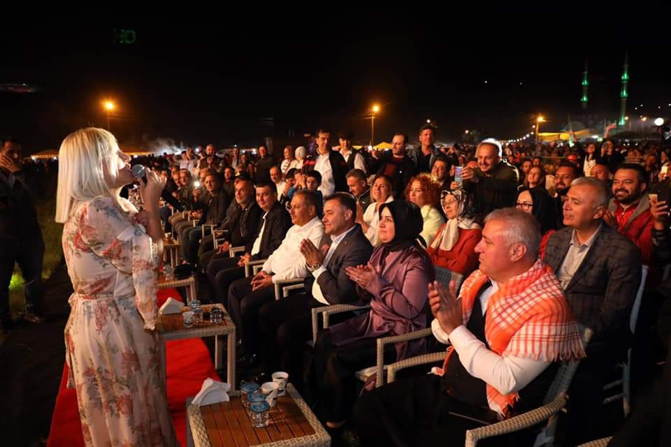 Alanya Belediye Başkanı Adem Murat Yücel’in konuşmasının ardından sahneye çıkan Türk Halk Müziği sanatçısı, besteci ve söz yazarı Yudum sahne aldı. Bağlamasıyla alanı dolduran binlerce kişiye birbirinden değerli şarkılarını söyleyen Yudum, en sevilen türkülerini hayranları için seslendirdi. Sahneden inerek seyircilerle birlikte şarkı söyleyen ve eğlenen Yudum, izleyenlere unutulmaz bir akşam yaşattı. Başkan Yücel Yudum’un muhteşem konserinin ardından sahneye gelerek ünlü sanatçıya üzerinde portresi bulunan su kabağı ve çiçek motifli koza tablosu hediye ederek teşekkürlerini iletti.