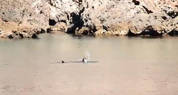 Antalya'da teknesiyle turistleri gezdiren 37 yaşındaki Ozan Ertürk Şahin, dün Düden Şelalesi'nin denizle buluştuğu falezler bölgesinde yanındakilerle denize girdi. 5 metre ötelerinde yaklaşık 2 metre boyundaki balığı görünce korkuya kapılan Şahin ve turistler telaşla tekneye döndü. İlk şokun ardından telefonlarına sarılan tatilciler, dünyada sayıları 400 ile 600 arasında olduğu tahmin edilen Akdeniz fokunu hem görüntüledi hem de beslenmesine şahitlik etti.