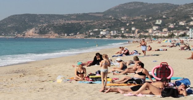 Alanya'da güneşli havayı fırsat bilen yerli ve yabancı tatඈlcඈler soluğu plajda aldı.