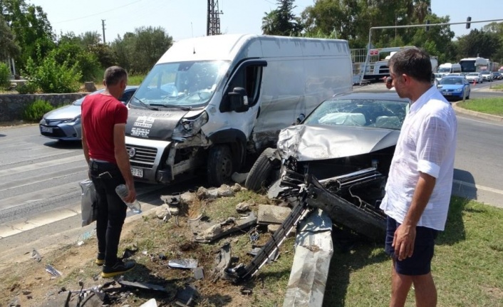 Antalya’da otomobilin kırmızı ışık ihlali yapan minibüse yandan çarpması sonucu meydana gelen kazada minibüs devrilirken, otomobil hurdaya döndü. Aydınlatma direği ve trafik lambasının da yerinden söküldüğü kazada araç sürücüleri hurdaya dönen araçlardan şans eseri burunları bile kanamadan çıktı. Kazan anı ise anbean güvenlik kameralarına yansıdı.