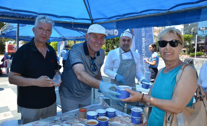 Antalya Büyükşehir Belediyesi’nin her yıl düzenlediği ve geleneksel hale getirdiği aşure ikramını bu yıl da sürdürülüyor. Antalya Büyükşehir Belediyesi Sosyal Hizmetler Dairesi Başkanlığı’na bağlı Alanya Aşevi’nde özenle hazırlanan aşureler stantı ziyaret eden herkese ikram edildi. Alanya Atatürk Anıtı önünde düzenlenen Aşure İkramı etkinliğine CHP Alanya İlçe Başkanı Bülent Kandemir, Yönetim Kurulu üyeleri, kadın ve gençlik kolları yöneticileri Antalya Büyükşehir Belediyesi Alanya Hizmet Birimi Şube Müdürü Gazi Öten, Büyükşehir Birim sorumluları ve çok sayıda vatandaş katıldı. Başkan Kandemir, partili yöneticiler ve Alanya Şube Müdürü Gazi Öten kendi elleriyle vatandaşlara turistlere aşure ikram etti.