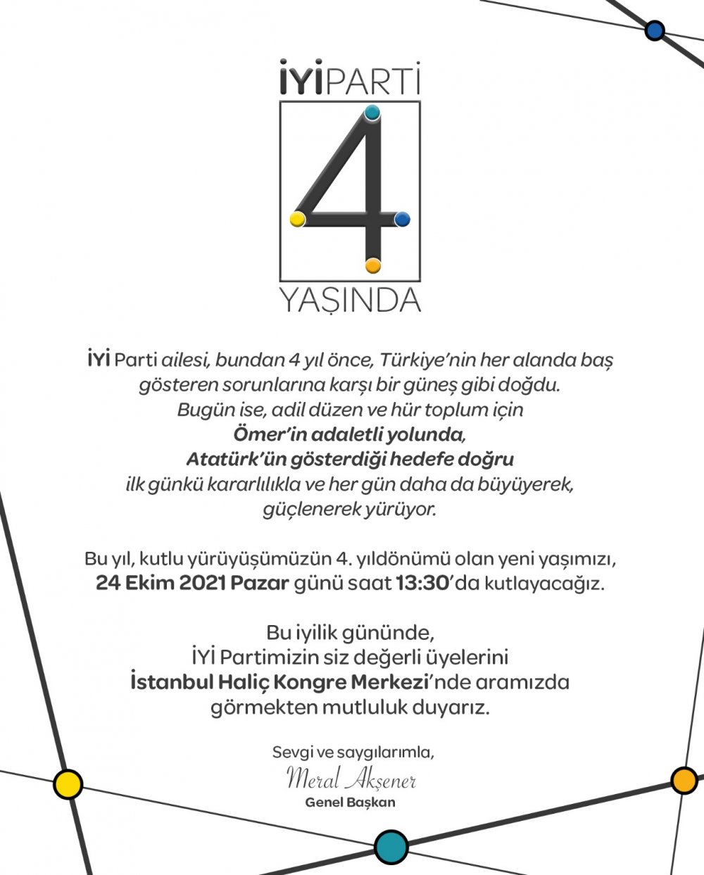 İYİ Parti Alanya İlçe Teşkilatı, Başkan Alper Arıkan öncülüğünde partinin 4. yıl kutlamaları için İstanbul'a gidiyor. İYİ Parti'nin 4. kuruluş yıl dönümü kutlaması 24 Ekim Pazar günü saat 13.30 İstanbul Haliç Kongre Merkezi'nde gerçekleştirilecek. 4. yıl kutlamaları için İstanbul'a gidecek olan teşkilat üyelerinin bu akşam saat 21.00'da çevreyolu üzerindeki Garanti Bankası'nın önünden kalkacak araçla yola çıkacağı öğrenildi.
