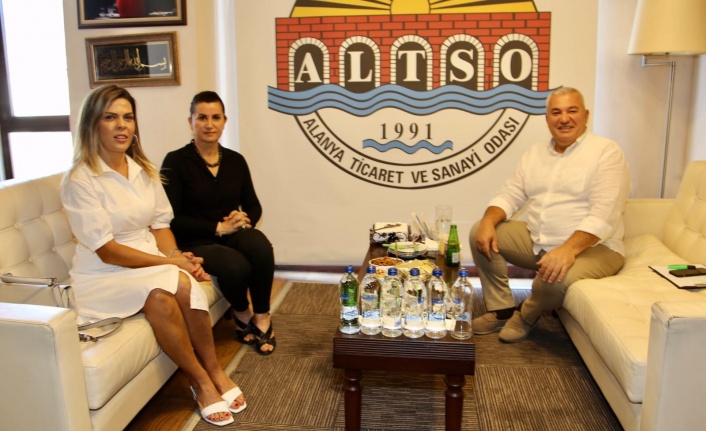 Alanya’da kadınların girişimcilik ruhunu öne çıkarmada büyük desteği olan Alanya Kadın Girişimciler Kurulu üyesi ve Alanya Belediye Meclis üyesi Meliha Aras Erdoğan ve Kadın girişimci Mukaddes Kerimoğlu, Alanya Ticaret ve Sanayi Odası (ALTSO) Başkanı Mehmet Şahin’i ziyaret ettiler. Ziyarette ikilinin 'Kuru Meyve İmalatı’ üzerine planladıkları proje ile ilgili görüş alışverişinde bulunuldu. Başkan Şahin, sosyal medya üzerinden yaptığı paylaşımla ziyaretlerinden dolayı teşekkür etti.