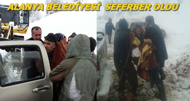 Alanya Belediyesi tarafından oluşturulan karla mücadele ekipleri kar yağışının etkili olduğu alanlarda kapanan yollar ve aşırı kar yağışı nedeniyle mahsur kalan vatandaşların imdadına koşuyor.Alanya Belediyesi ekipleri Kadıyakası Yaylası, Kızıalan, Mahmutseydi,Köprübaşı ve Gedevet Yaylası’nda mahsur kalan vatandaşları gece geç saatlere kadar süren bir çalışma ile kurtardılar.