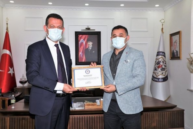 Alanya Kaymakamlığı Sosyal Yardımlaşma ve Dayanışma Vakfı aracılığıyla gerçekleştirilen öksüz ve yetim çocukların istek ve dileklerini yerine getirme projesinde gönüllü katkılarında dolayı Alanya Belediye Başkanı Adem Murat Yücel ve Alanya Ticaret ve Sanayi Odası Başkanı Mehmet Şahin’e teşekkür belgesi takdim etti.