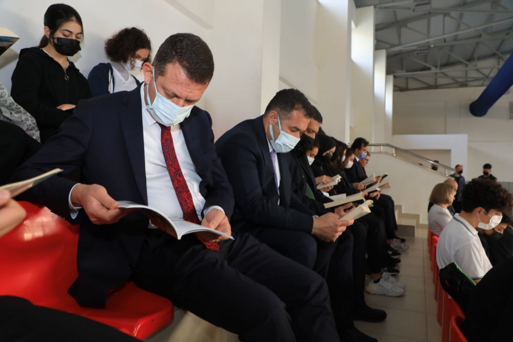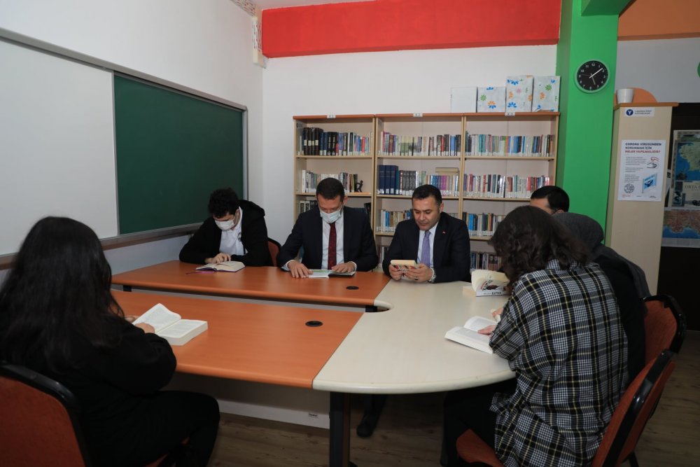 Bayrak ve İstiklal Marşı töreninden sonra Kaymakam Ürkmezer, Belediye Başkanı Adem Murat Yücel, İlçe Milli Eğitim Müdürü Yusuf Yılmaz, hayırsever Hüseyin Girenes ve okul yönetimi ile birlikte sınıf ziyaretlerinde bulunup okul kütüphanesi ve spor salonunda öğrencilerle birlikte kitap okuma etkinliğine katıldılar.