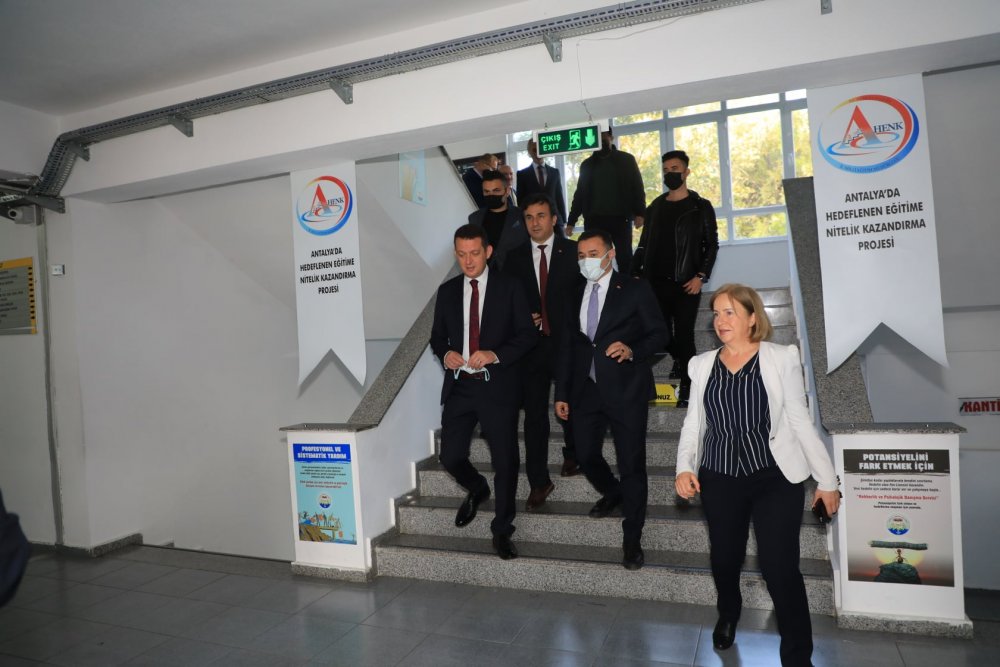 Kaymakam Ürkmezer’e okul ziyaretinde Alanya Belediye Başkanı Adem Murat Yücel, İlçe Milli Eğitim Müdürü Yusuf Yılmaz ve okulu yaptıran hayırsever iş adamı Hüseyin Girenes eşlik etti.