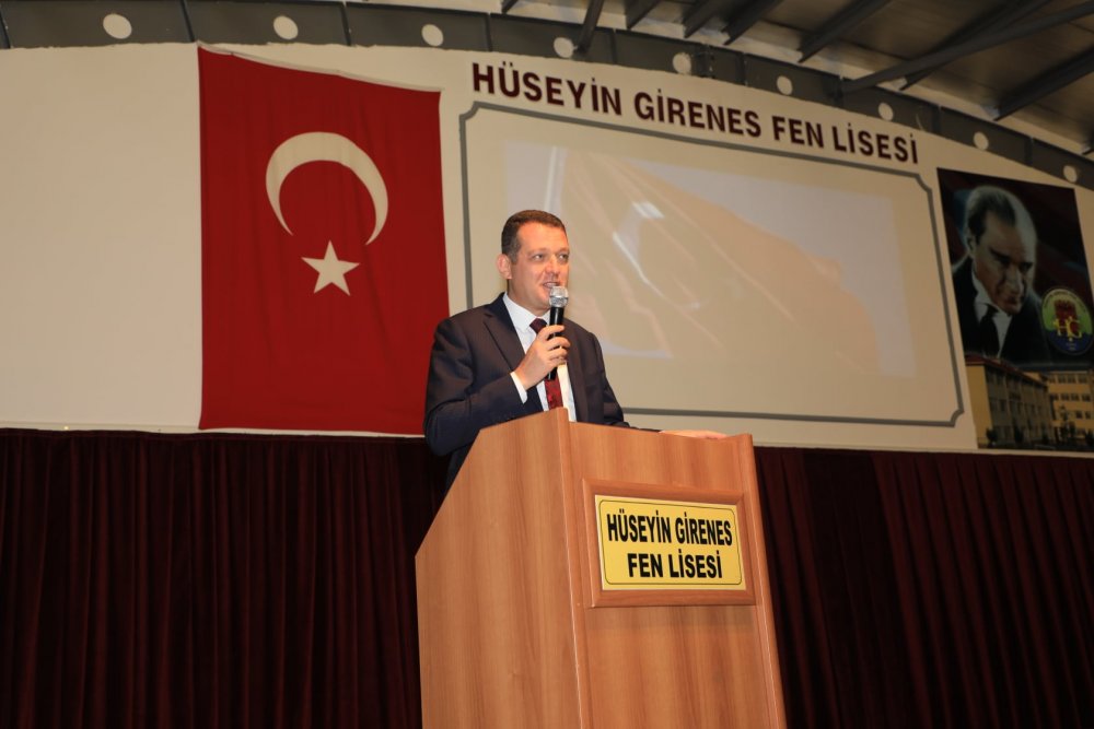 Alanya Belediye Başkanı Adem Murat Yücel ve okulu yaptıran hayırsever iş adamı Hüseyin Girenes’in de katıldığı okul ziyaretinde Hüseyin Girenes Fen Lisesinde öğrencilerle birlikte Bayrak Töreni ve İstiklal Marşı programına katılan Kaymakam Ürkmezer ilk olarak öğrencilere hitap ederek; “Sevgili öğrenciler her hafta okullara gidiyoruz ve öğrencilerimizi ziyaret ediyoruz, onlarla birlikte program yapıyoruz. Böyle başarılı okullarda öğretmenlerimiz ve öğrencilerimiz asıl hedefine kilitlenmiş şekilde gelip hedefleri doğrultusunda devam ediyorlar. Devletimiz ve Cumhuriyetimiz o kadar büyük ki bizleri, sizleri devletin ve hayırseverlerin yaptırdığı imkanları güzel olan hedefe kilitlenmiş böyle güzel okullarla, öğretmenlerle tanıştırma ve çalıştırma imkanları sunuyor. Bizlere ve sizlere düşen de başarıya gitmek için devletimiz, milletimiz yaşadığımız kent ve toplum için her zaman en iyiyi ve en doğruyu hedeflemektir. Başarıya ulaşmak için ne yapıyorsanız yapın ancak istikrarlı bir şekilde yapın. Hepinize başarılar diliyorum”dedi.