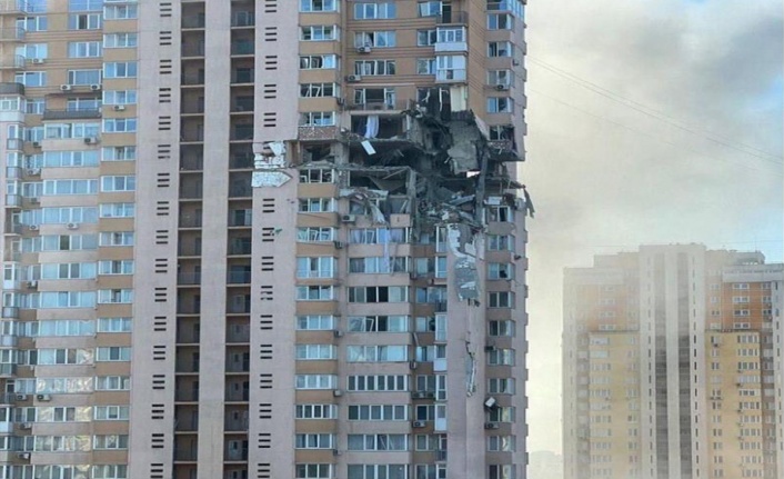 Kiev'de binaya bomba düştü