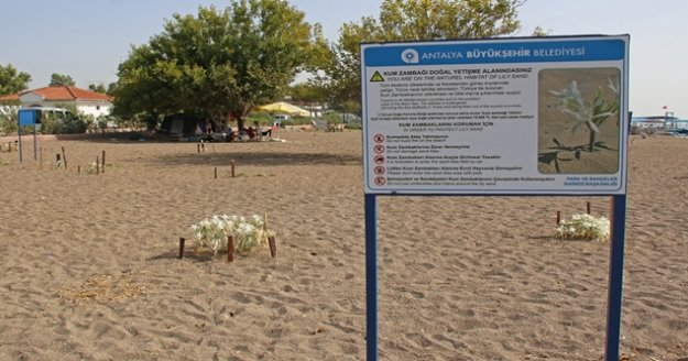 Tüm Akdeniz ülkelerinde ve Karadeniz kıyılarında doğal olarak yetişen, Ağustos sonu-Ekim ayı arasında çiçek açan ve güzel kokulu çiçeklere sahip olan kum zambakları (Pancratium maritimum) yoğun şehirleşme ve turizm nedeniyle nesli tükenme tehlikesi altına girdiğinden dolayı, 2016 yılında Uluslararası Doğa Koruma Birliği tarafından koruma altına alındı. Soğanlı bir bitki olan, kumul ve kurak koşullara dayanıklı olan tür, yerli ve yabancı turistlerin yoğun ilgi odağı oluyor. Görüntüsü ve kokusuyla büyüleyen kum zambakları Lara sahiline de renk katıyor.